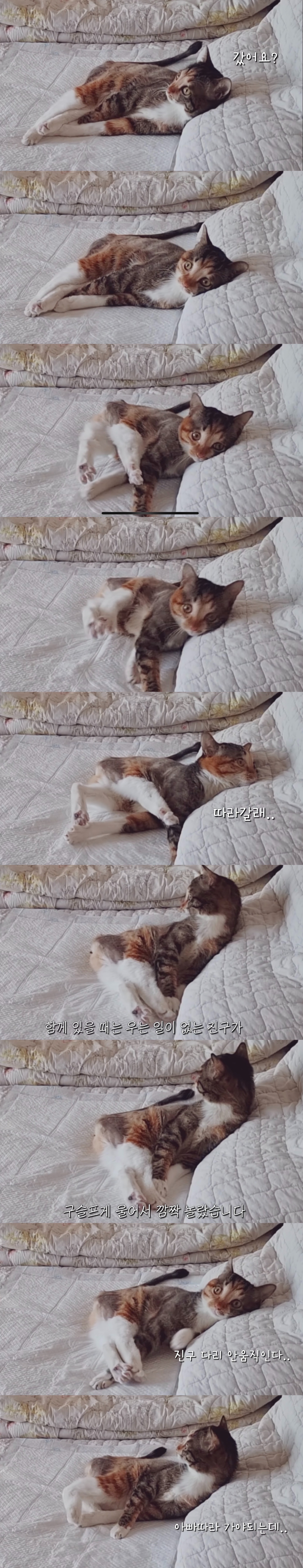 울면서 따라나가려는 듯 다리를 버둥거림 ㅜㅠㅜ