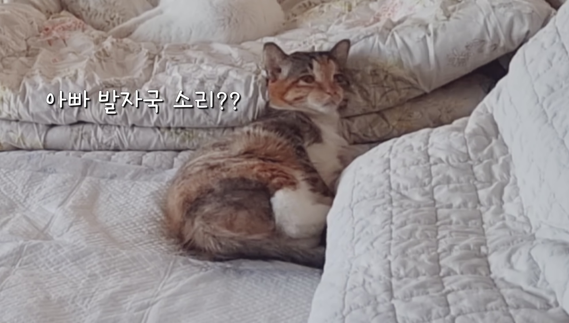 흰 냥이가 조심스레 올라오고