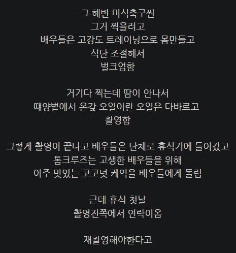 [유머]탑건2 출연진 단체로 개빡쳤던 썰 작성자까를로스|작성시간22.08.01|조회수3,980 목록 댓글 4 글자크기 작게가 글자크기 크게가 엽기 혹은 진실(세상 모든 즐거움이 모이는곳)출처 : 다음검색 현재 게시글 추가 기능 열기 북마크 공유하기 신고 센터로 신고 댓글 댓글 4 댓글쓰기 답글쓰기 댓글 리스트 작성자즐거운내일의용 | 작성시간 22.08.01 화남. 작성자방탄소년단지민 | 작성시간 22.08.01 싸우자는 건가 작성자스폰지탕 | 작성시간 22.08.01 아이 킬 유 작성자애플파이릿 | 작성시간 22.08.01 이거 인터뷰까지보면 결국은 재밌었다든데명장면도 나오고 댓글 전체보기