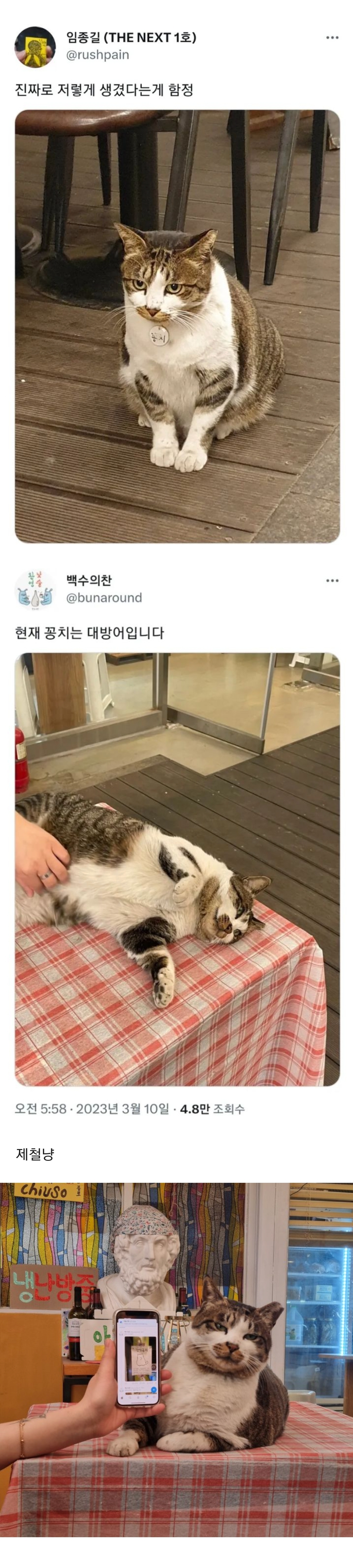 [동물]이렇게 생긴 애 "간식 금지" 작성자와 이라노?와 이라는데?|작성시간23.03.16|조회수3,413 목록 댓글 1 글자크기 작게가 글자크기 크게가 엽기 혹은 진실(세상 모든 즐거움이 모이는곳)출처 :https://m.cafe.daum.net/SoulDresser/FLTB/696369?svc=daumapp&bucket=toros_cafe_channel_alpha소울드레서 (SoulDresser)SoulDresser Fashion & Beautym.cafe.daum.net 다음검색 현재 게시글 추가 기능 열기 북마크 공유하기 신고 센터로 신고 댓글 댓글 1 댓글쓰기 답글쓰기 댓글 리스트 작성자엄마는 이계인 | 작성시간 23.03.16 중성화한 길냥이인갑네요. 귀... 댓글 전체보기