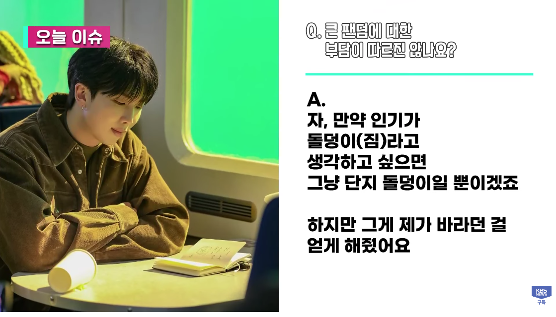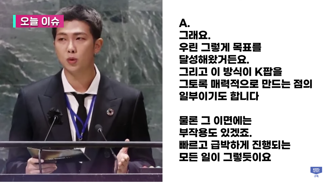 답댓글 작성자엄마는 이계인 작성시간 23.03.16 RM이 이야기하고자 하는건 남에게서 주어진 일이 아닌 스스로 하는 일과 자기개발을 의미하지 않을까요?
