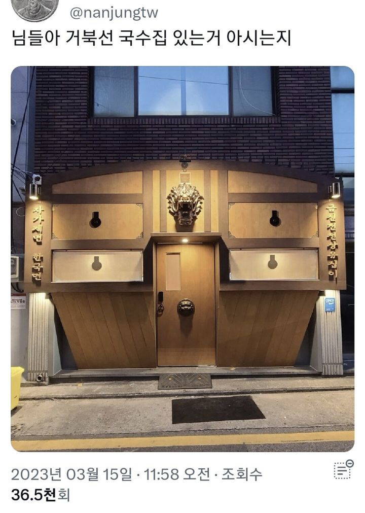 [스크랩] [사진]국뽕 차오른다는 어느 국수집 작성자백상아리|작성시간23.03.16|조회수5,873 목록 댓글 14 글자크기 작게가 글자크기 크게가 다음검색 스크랩 원문 : 이종격투기 현재 게시글 추가 기능 열기 북마크 공유하기 신고 센터로 신고 댓글 댓글 14 댓글쓰기 답글쓰기 댓글 리스트 작성자자몽중독 | 작성시간 23.03.17 부산에 금신전선상유십이 검색하면 나온대 찐으로 있다니 대박👍!! 검색하면서 놀랬네😮 작성자와 이라노?와 이라는데? | 작성시간 23.03.17 와....👍👍👍 작성자냥냥펀치 | 작성시간 23.03.17 와...좋네요ㅜㅜ 작성자유산소운동하자 | 작성시간 23.03.17 오 아이디어좋다. 작성자*여우공주* | 작성시간 23.03.18 댓글 전체보기