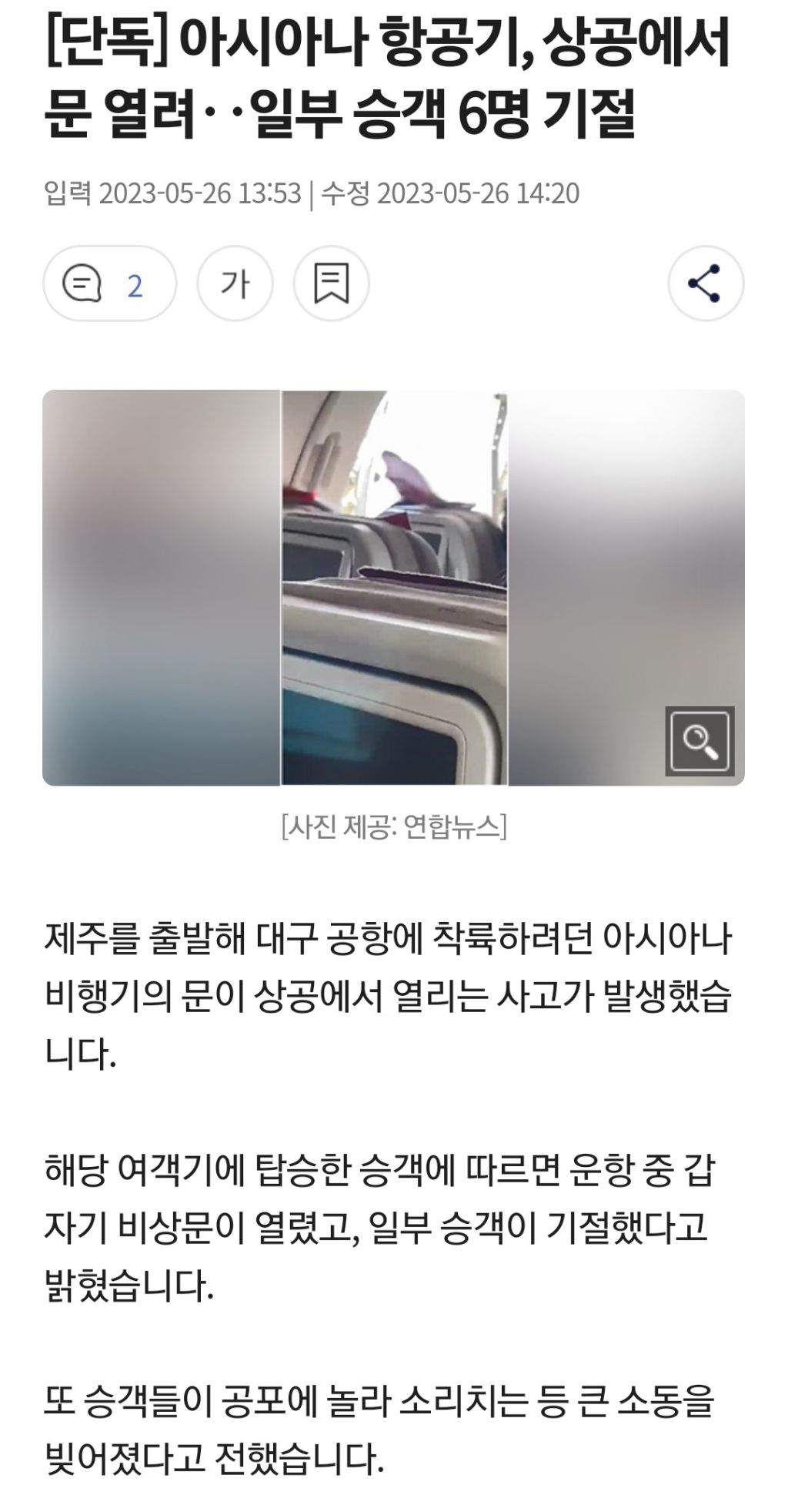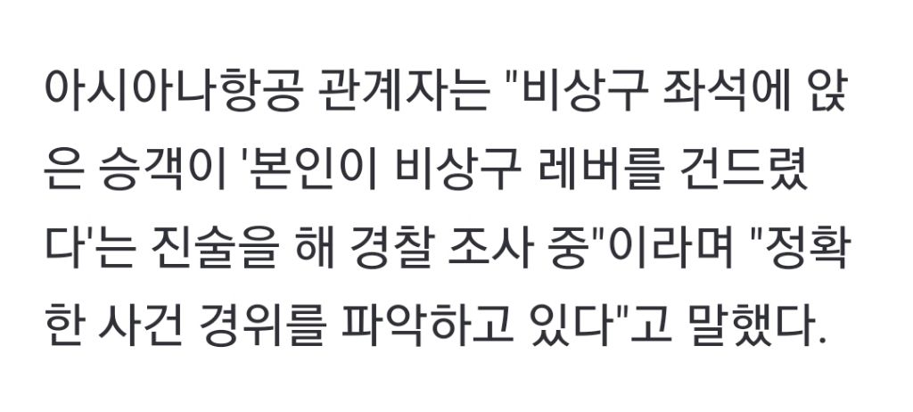 작성시간 23.05.26 다른기사보면 직접열고 뛰어내리려고해서 승무원들이랑 다른승객들이 잡아끌엇다던ㄷㅣ..