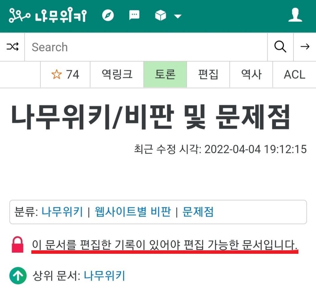 뭐만 하면 xxx/비판, xxx/문제점, xxx/논란 문서가 판을 치는 곳인데 정작 나무위키는 비판할 수 없는 곳
