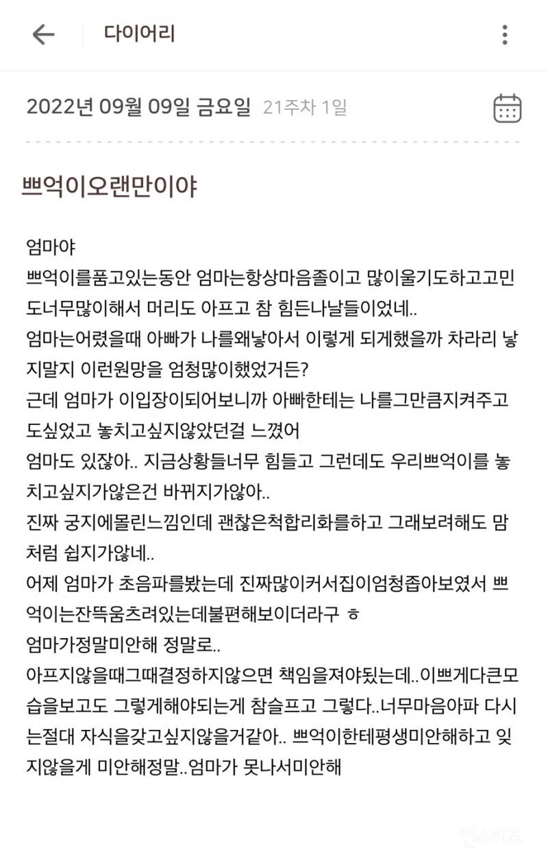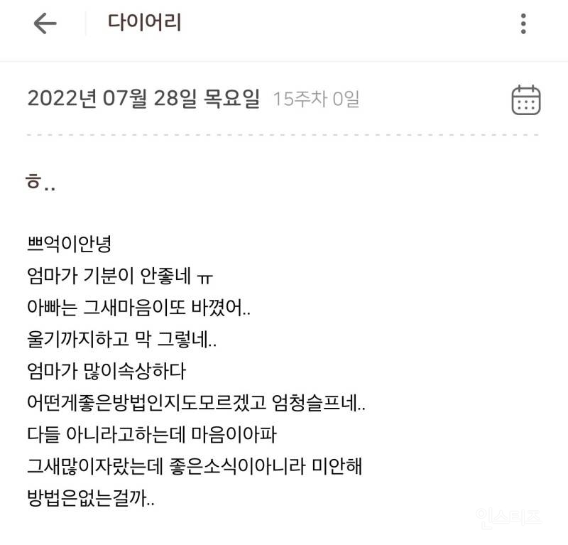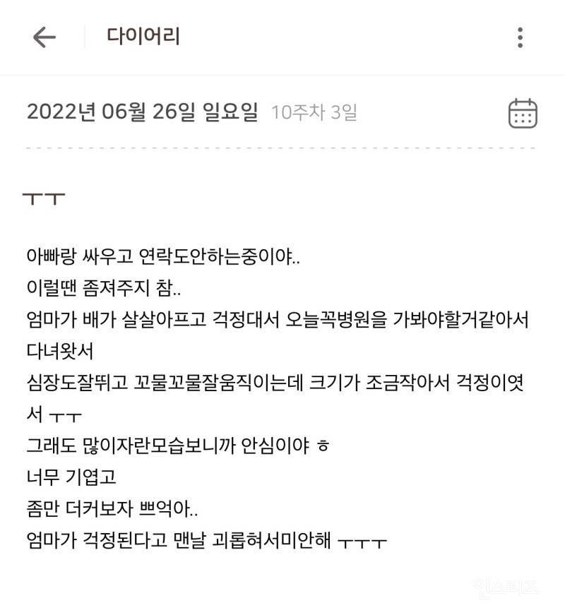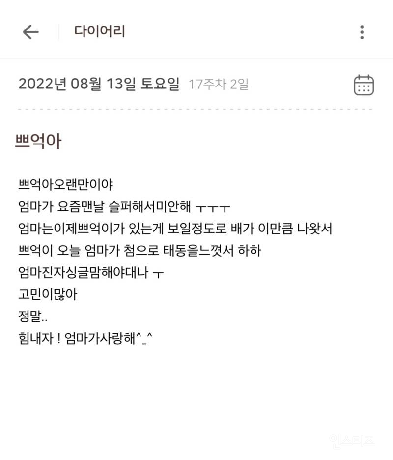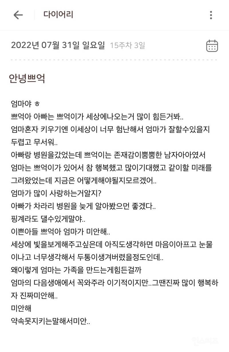 유혜디 블로그에 올라온 증거사진, 임산부 일기