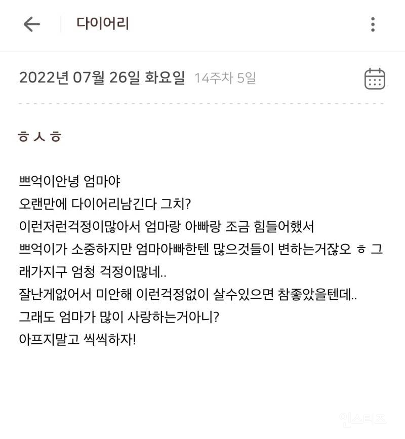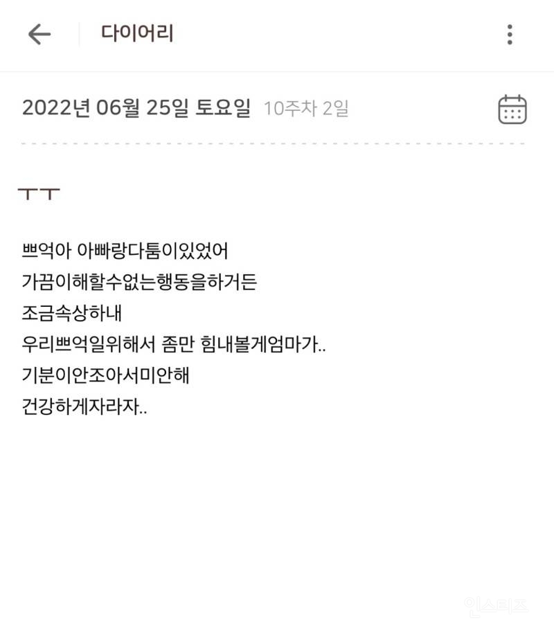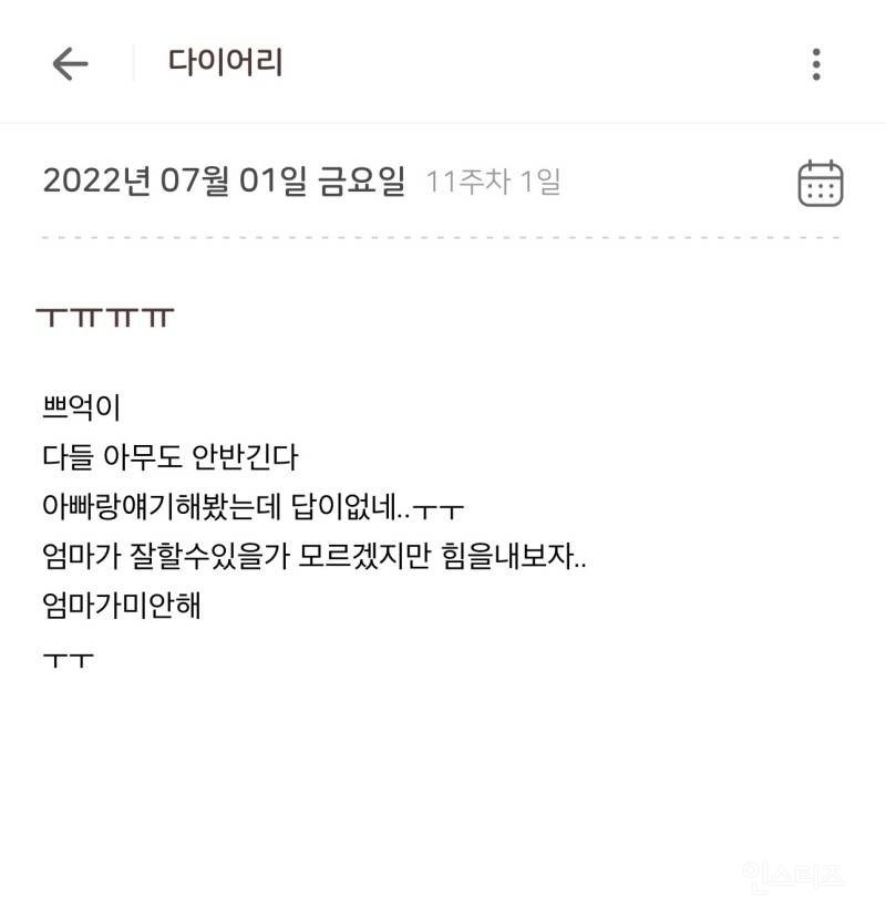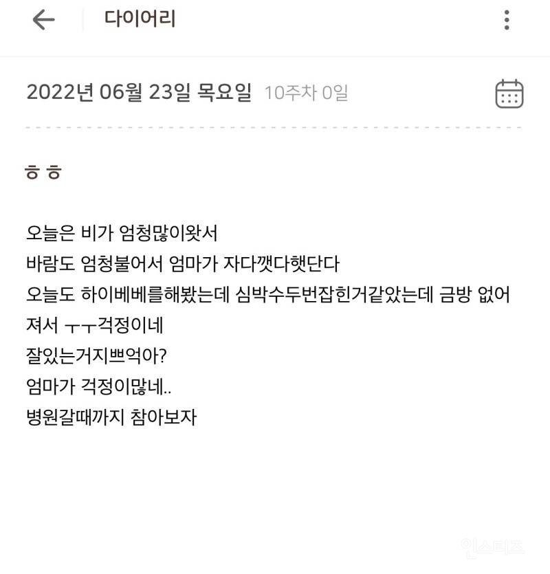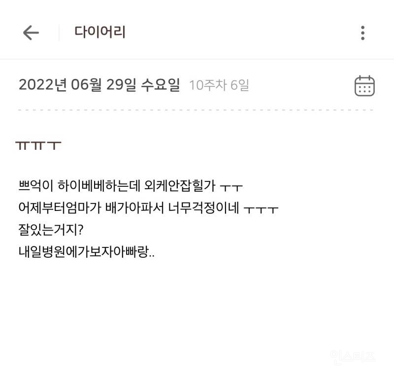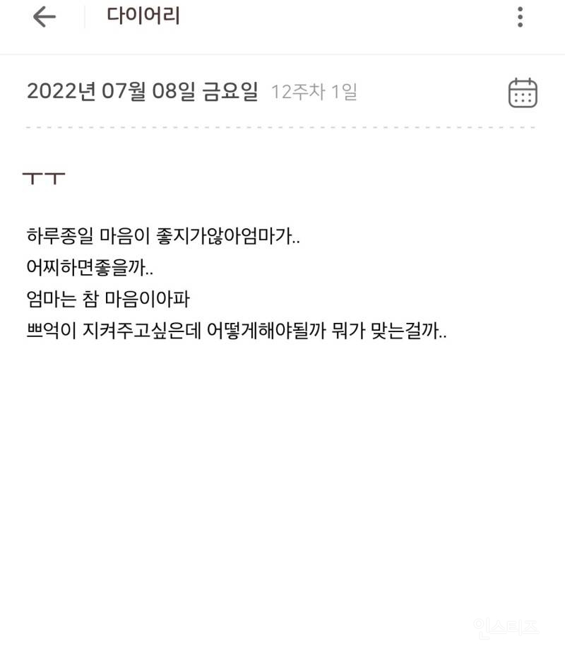 유혜디 블로그에 올라온 증거사진, 임산부 일기