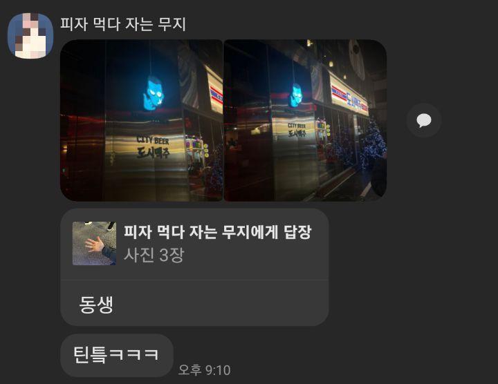 여자친구가 저에게 오후 9시10분에 강남 도시맥주 라는 술집 사진을 인증샷으로 보내줬습니다