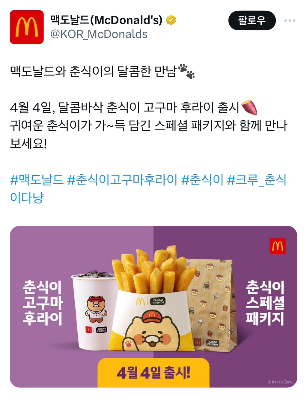 [스크랩] [기타]맥도날드 신메뉴 고구마후라이 작성자아랑수호가|작성시간24.04.02|조회수3,954 목록 댓글 18 글자크기 작게가 글자크기 크게가 출처: https://x.com/kor_mcdonalds/status/1773515979454296528?s=464/4 출시 다음검색 스크랩 원문 : *여성시대* 차분한 20대들의 알흠다운 공간 현재 게시글 추가 기능 열기 북마크 공유하기 신고 센터로 신고 댓글 댓글 18 댓글쓰기 답글쓰기 댓글 리스트 작성자엔터프라이즈(회색유령) | 작성시간 24.04.02 제법... 작성자모립 | 작성시간 24.04.02 고구마 후라이..시장에서 팔고있는 고구마 튀김과 같은 맥락이네요.조금 더 통통한듯. 작성자INTJ | 작성시간 24.04.02 ㄱ ㄱ ㅑ 작성자방탄소년단지민 | 작성시간 24.04.02 감자보다 고구마가 더 맛있겠네 작성자에헤이~ | 작성시간 24.04.03 맛 없을 수가 없는데..?? 댓글 전체보기