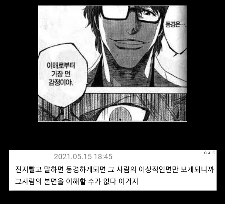 [기타]“동경이란, 이해에서 가장 먼 감정이야.”의 의미 작성자초록푸른|작성시간24.04.27|조회수2,191 목록 댓글 3 글자크기 작게가 글자크기 크게가 엽기 혹은 진실(세상 모든 즐거움이 모이는곳)출처 :https://m.ruliweb.com/best/board/300143/read/65822708“동경이란, 이해에서 가장 먼 감정이야.”의 의미.jpg | 유머 게시판 | 루리웹“동경이란, 이해에서 가장 먼 감정이야.”의 의미.jpgm.ruliweb.com 다음검색 현재 게시글 추가 기능 열기 북마크 공유하기 신고 센터로 신고 댓글 댓글 3 댓글쓰기 답글쓰기 댓글 리스트 작성자haha ha | 작성시간 24.04.27 아이젠.. ㅜㅜㅜ 작성자amphe | 작성시간 24.04.27 붕옥젠.. 작성자황초롱이 | 작성시간 24.04.27 댓글 전체보기