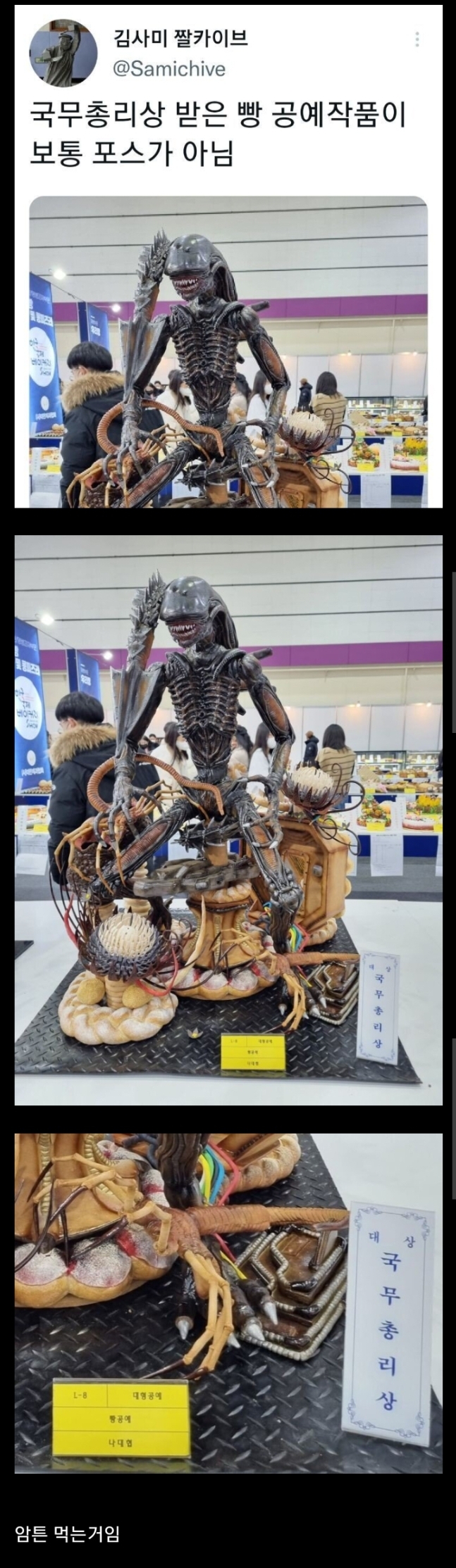 [기타]국무총리상 받은 빵 공예작품 퀄리티 ㄷㄷ 작성자초록푸른|작성시간24.05.05|조회수3,531 목록 댓글 4 글자크기 작게가 글자크기 크게가 엽기 혹은 진실(세상 모든 즐거움이 모이는곳)출처 : https://m.fmkorea.com/best/6994399046 다음검색 현재 게시글 추가 기능 열기 북마크 공유하기 신고 센터로 신고 댓글 댓글 4 댓글쓰기 답글쓰기 댓글 리스트 작성자김창근 2 | 작성시간 24.05.05 축하합니다 작성자에이스준팔이님 | 작성시간 24.05.05 누가 먹어요?💦💦💦 작성자재-쥬래갠 | 작성시간 24.05.05 먹음직스러움은 심사 기준에 없나보다... 작성자계에란 | 작성시간 24.05.05 오우.. 대단하긴 한데.. 디저트 분야는 디저트스러움이 점수에 반영 되어야 하는거 아닌가유.. 댓글 전체보기