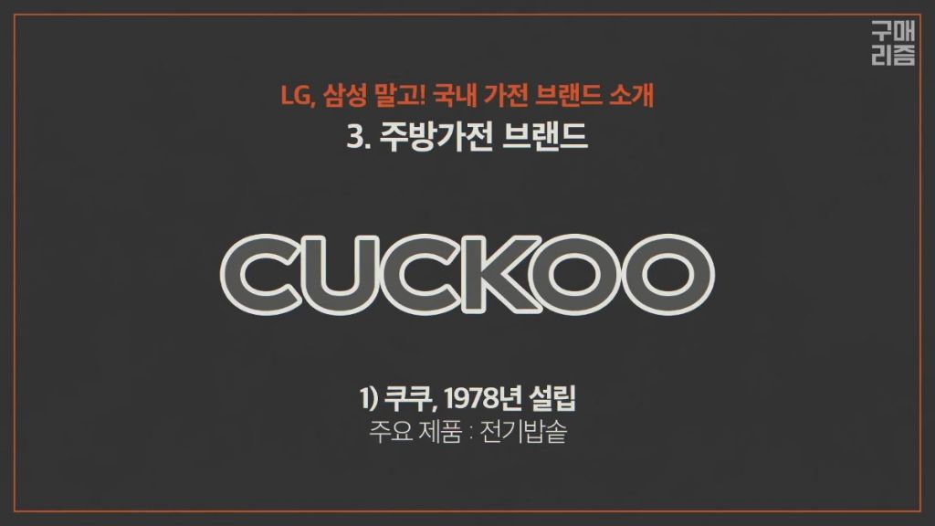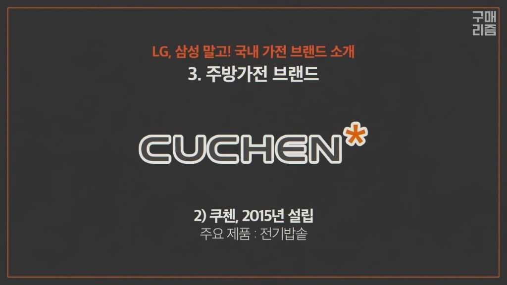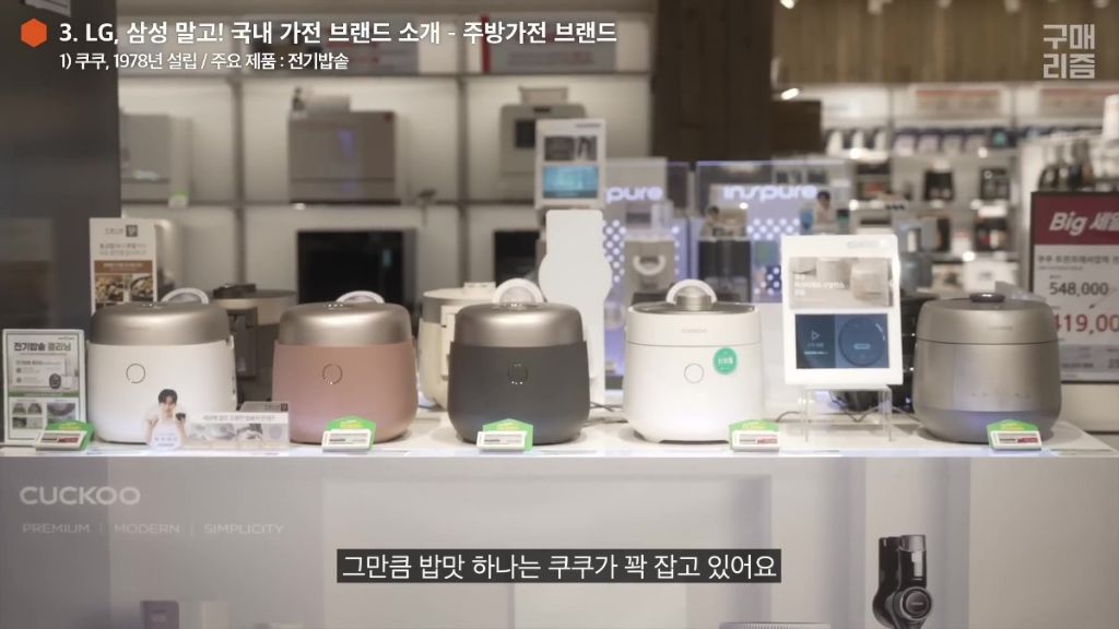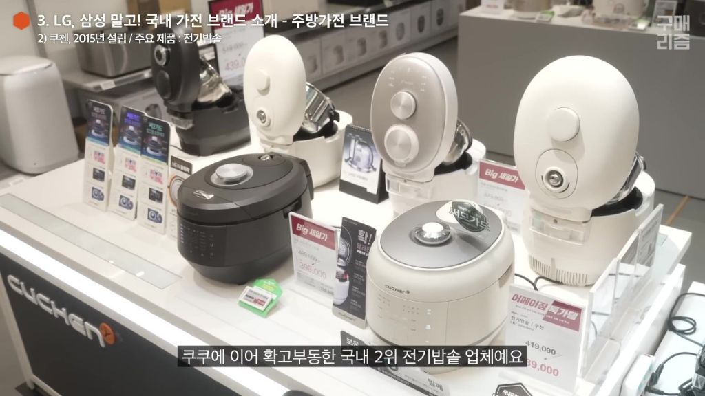 쿠쿠 : 국내 1위 전기밥솥 브랜드고 세계적으로도 평 좋다고 함