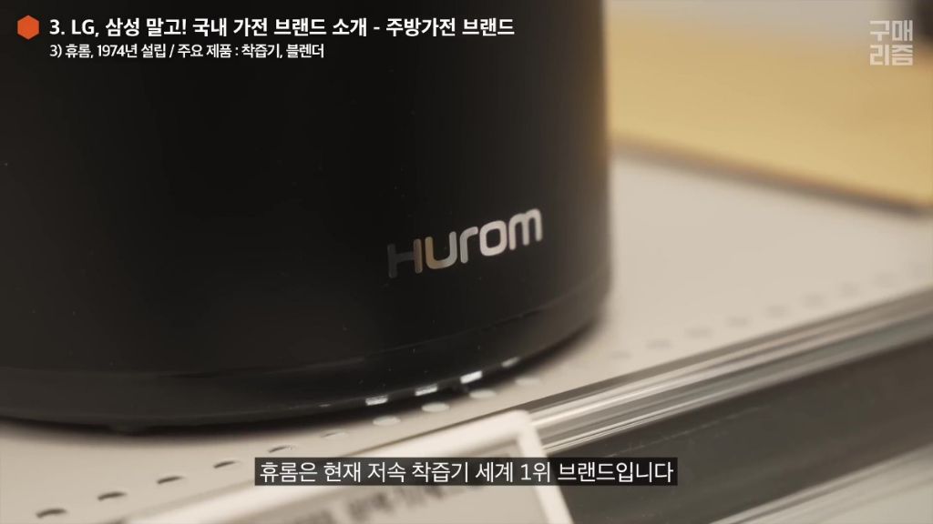 휴롬 : 저속 착즙기 세계 1위 브랜드(판매량, 기술력, 인지도 다 탑이라고 함)