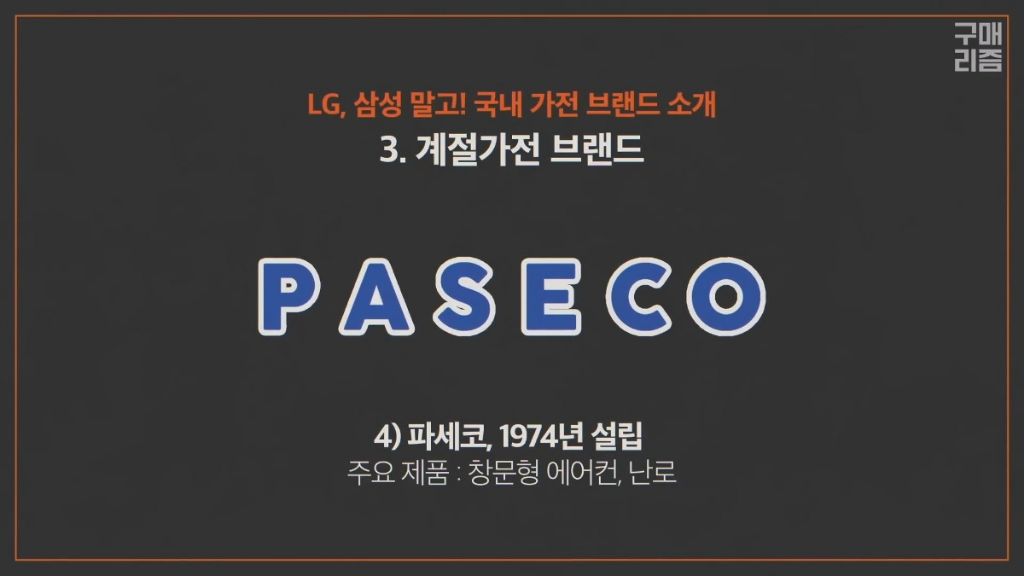 파세코 : 창문형 냉장고랑 의류관리기(에어드레서, 스타일러)를 최초로 만들었다고 함