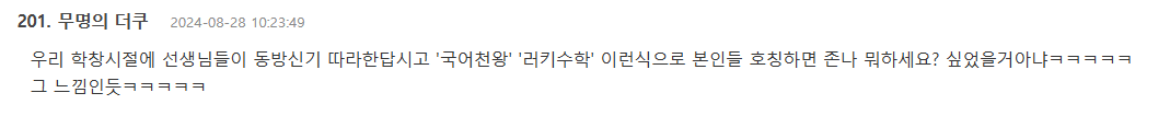 우리 학창시절에 선생님들이 동방신기 따라한답시고 '국어천왕' '러키수학' 이런식으로 본인들 호칭하면 존나 뭐하세요? 싶었을거아냐ㅋㅋㅋㅋㅋ 그 느낌인듯ㅋㅋㅋㅋ