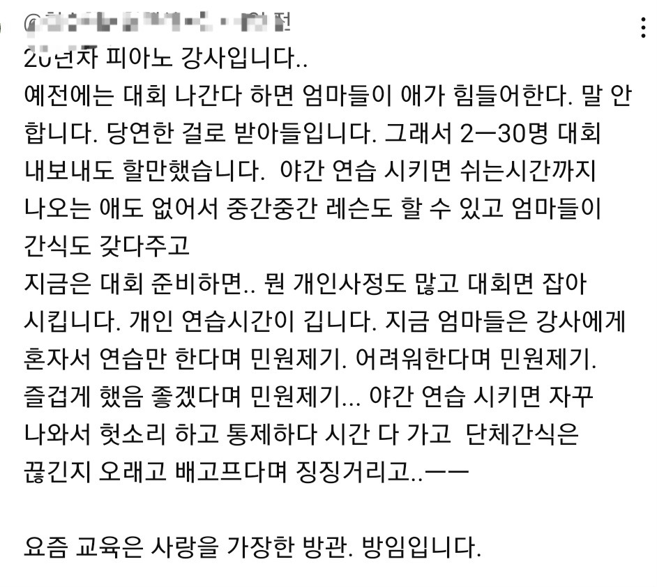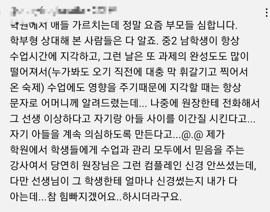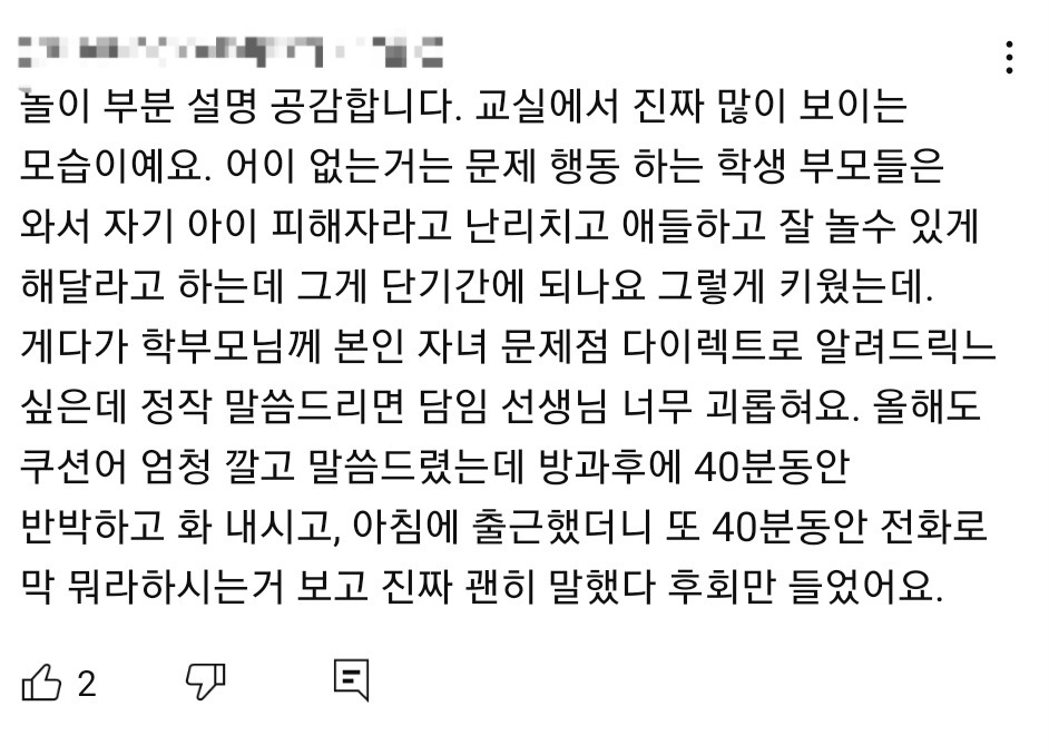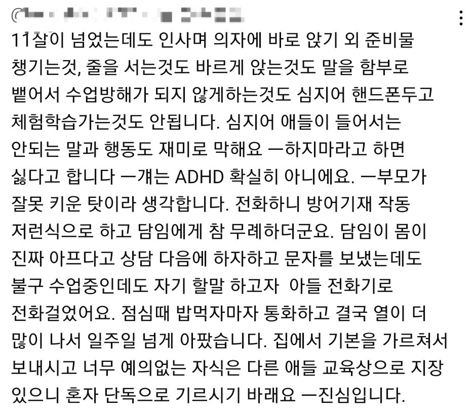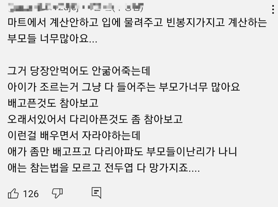 진짜 부모 자식간의 좋은 감정 관계만 생각하고 지도 안하는 부모 너무 많음 이젠 다수라서 소수의 교육시키는 부모가 이상할 지경. -