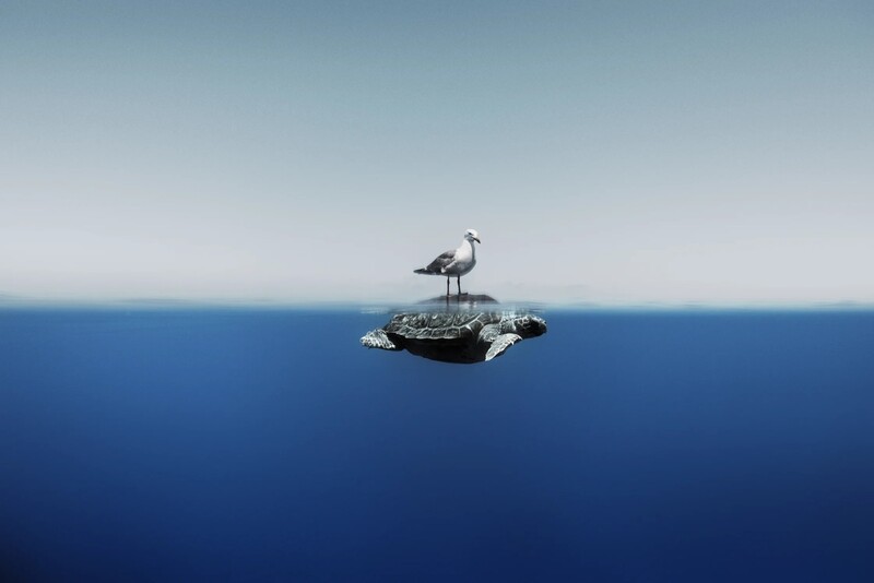 거북이 등에 탄 갈매기. Enric Gener/Ocean Photographer of the Year 2024