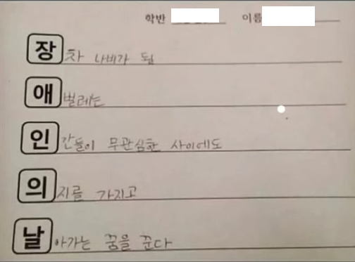 [스크랩] [감동]초등학생이 쓴 '장애인의 날' 5행시.jpg 작성자네제가바로한화팬입니다|작성시간25.01.15|조회수4,772 목록 댓글 7 글자크기 작게가 글자크기 크게가 다음검색 스크랩 원문 : 樂soccer 현재 게시글 추가 기능 열기 북마크 공유하기 신고 센터로 신고 댓글 댓글 7 댓글쓰기 답글쓰기 댓글 리스트 작성자sooya1 | 작성시간 25.01.16 와~ 멋있는 시네 작성자황초롱이 | 작성시간 25.01.16 작성자재-쥬래갠 | 작성시간 25.01.16 와.. 대박 작성자와썹요맨 | 작성시간 25.01.16 와..... 왜 눈물이 나지 ㅜㅜ 작성자초콜릿우체국 | 작성시간 25.01.16 감동 ㅠㅠ 댓글 전체보기
