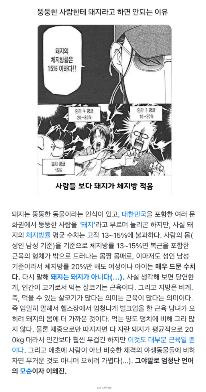 [스크랩] [기타]뚱뚱한 사람에게 돼지라 하면 안되는 이유.jpg 작성자황초롱이|작성시간25.01.23|조회수2,936 목록 댓글 5 글자크기 작게가 글자크기 크게가 다음검색 스크랩 원문 : 樂soccer 현재 게시글 추가 기능 열기 북마크 공유하기 신고 센터로 신고 댓글 댓글 5 댓글쓰기 답글쓰기 댓글 리스트 작성자청춘은 바로 지금 | 작성시간 25.01.24 그럼 돼지는 운동도 안하는데 왜 근육이 많은걸까? 모태근수저인건가? 답댓글 작성자와탕카타리나 | 작성시간 25.01.24 4발로 다니다보면 인간도 그정도 체지방 유지할듯... 작성자마이에브 | 작성시간 25.01.24 어쩐지 쫀득하고 맛있더라 작성자재-쥬래갠 | 작성시간 25.01.24 근돼가 아니라 그냥 돼인거네? 작성자팩트체크 | 작성시간 25.01.26 ㅋㅋ 댓글 전체보기