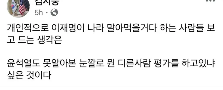 [스크랩] [사진]이재명이 나라 말아먹을거다 하는 사람들 보면 작성자초아요♥|작성시간25.06.04|조회수4,298 목록 댓글 27 글자크기 작게가 글자크기 크게가 다음검색 스크랩 원문 : 이종격투기 현재 게시글 추가 기능 열기 북마크 공유하기 신고 센터로 신고 댓글 댓글 27 댓글쓰기 답글쓰기 댓글 리스트 작성자살아라 | 작성시간 25.06.04 작성자승희님 | 작성시간 25.06.04 이개맏다 작성자마르필 | 작성시간 25.06.04 ㅋㅋㅋㅋㅋ 작성자앤지니어 | 작성시간 25.06.04 윤석열도 못말아먹은걸 이재명도 못말아 먹을 겁니다.ㅋㅋ 작성자영원의시 | 작성시간 25.06.07 어차피 대화가 통하지 않아요;; 무시가 답 댓글 전체보기
