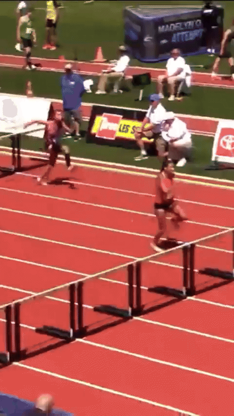 미국의 한 고등학교 육상 선수가 장애물 달리기 경기에서 금메달을 따는