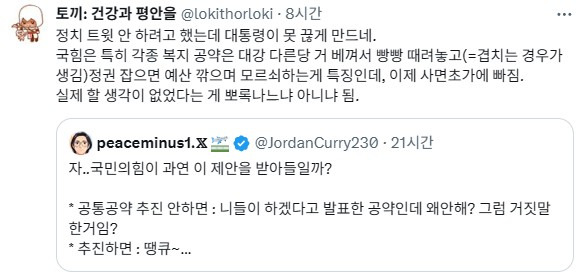 [기타]사면초가에 빠진 국힘 작성자전재준|작성시간25.06.05|조회수3,605 목록 댓글 20 글자크기 작게가 글자크기 크게가 엽기 혹은 진실(세상 모든 즐거움이 모이는곳)출처 : 각 캡쳐 내 원 작성자 계정 복지하는 척, 국민 생각하는 척 대충 올려놨던 정책들 싸그리 실행해야함 다음검색 현재 게시글 추가 기능 열기 북마크 공유하기 신고 센터로 신고 댓글 댓글 20 댓글쓰기 답글쓰기 댓글 리스트 작성자추파춥춥 | 작성시간 25.06.05 짜란다짜란다짜란다 작성자좋은게좋은건가? | 작성시간 25.06.05 밑에 사진 빵터짐 ㅋㅋㅋㅋㅋㅋㅋㅋㅋㅋㅋㅋㅋㅋㅋㅋㅋㅋㅋㅋㅋㅋㅋㅋㅋㅋ 작성자쫄고 그래 | 작성시간 25.06.06 짤한다 ㅋㅋㅋ 잘해주라 젭알 작성자이웃집도도로 | 작성시간 25.06.07 막짤 써도 될까요?? 작성자mal9 | 작성시간 25.06.09 해체가 답.. 댓글 전체보기