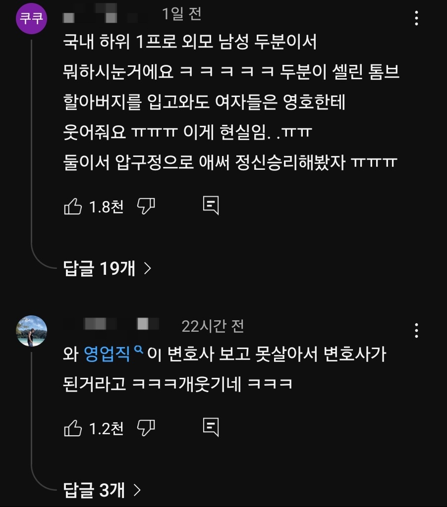 나솔 리뷰하는 유튜브 나와서 다른 출연자 오냐오냐 자랐다, 가난해서 변호사 된거다 뒷담 깜.