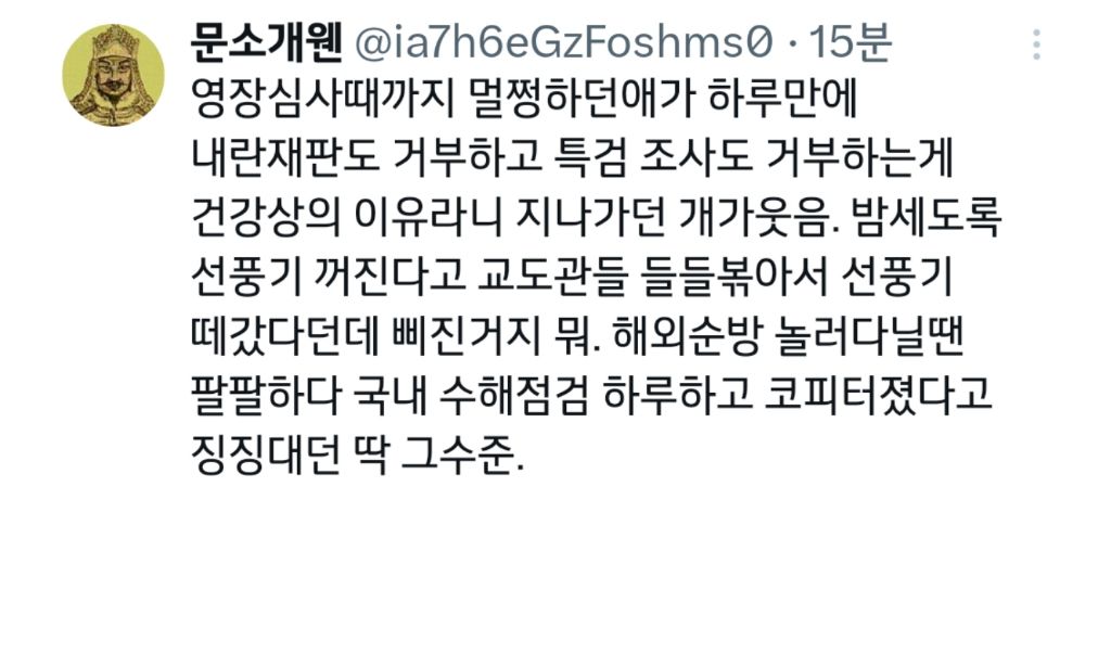 [스크랩] [기타]문소개웬"영장심사때까지 멀쩡하던애가.." 작성자황초롱이|작성시간25.07.11|조회수1,679 목록 댓글 5 글자크기 작게가 글자크기 크게가 징징대다가 선풍기 압수 ㅋㅋㅋㅋㅋㅋㅋㅋㅋㅋㅋㅋㅋㅋㅋㅋ 다음검색 스크랩 원문 : 이종격투기 현재 게시글 추가 기능 열기 북마크 공유하기 신고 센터로 신고 댓글 댓글 5 댓글쓰기 답글쓰기 댓글 리스트 작성자청춘은 바로 지금 | 작성시간 25.07.11 왜 살아 정말... 작성자추영우 | 작성시간 25.07.11 어휴 인간아 정신 좀 차려라 작성자찐이야여찐 | 작성시간 25.07.11 으휴 작성자단테-버질 | 작성시간 25.07.12 술 못 마셔서 금단 증상 생겼다면 이해가 간다 작성자Baby J | 작성시간 25.07.12 으휴 인간아… 댓글 전체보기