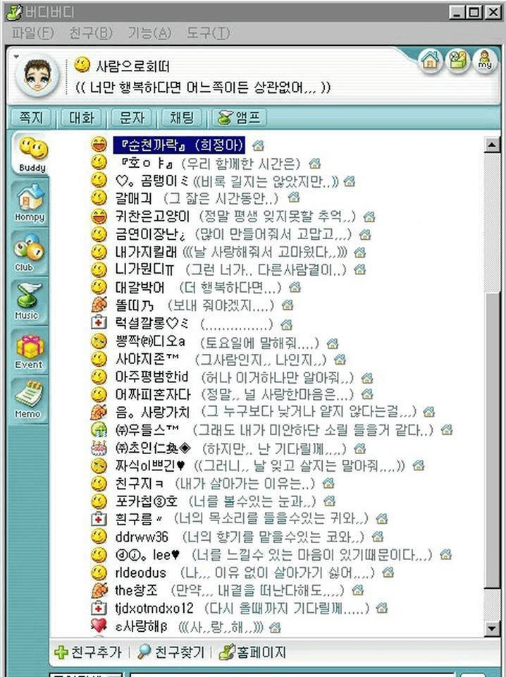 [사진]추억의 버디버디 아이디 유형을 알아보자.jpg 작성자초아요♥|작성시간25.09.26|조회수2,268 목록 댓글 12 글자크기 작게가 글자크기 크게가 엽기 혹은 진실(세상 모든 즐거움이 모이는곳)출처 : 디시인사이드 다음검색 현재 게시글 추가 기능 열기 북마크 공유하기 신고 센터로 신고 댓글 댓글 12 댓글쓰기 답글쓰기 댓글 리스트 작성자폥수 | 작성시간 25.09.27 ㅋㅋㅋㅋㅋ나는 ㅛ뷁동산ㅛ 작성자꽥꽥이 | 작성시간 25.09.27 나는 발그러l♡ 이거였음ㅋㅋㅋ 작성자아기비단털쥐 | 작성시간 25.09.27 버디버디는 기억이 안나고ㅋㅋㅋㅋ 세이클럽인가 퍼피레드였나 감자곤듀 이런거였음ㅋㅋㅋㅋㅋ 작성자미루코 | 작성시간 25.09.27 친구들하고 만든거라 와방여시였는데 당연히 폰 자판으로는 치지도 못하네ㅋㅋ 작성자BTS김석진 | 작성시간 25.09.27 ☆내이름☆ 이거였는뎅ㅋㅋㅋㅋㅋ 댓글 전체보기