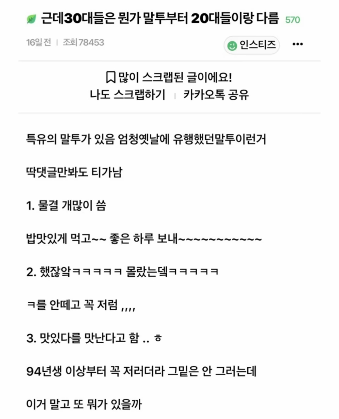 작성자계에란 작성시간 25.10.04 2는 맞음ㅋㅋㅋㅋ 근데 1,3은 나도 안 쓰고 내 주변도 안 쓰는데 4,50대 이상 아님? 우리 부모님 나이분들이나 쓰시는거 같은데ㅋㅋㅋㅋ