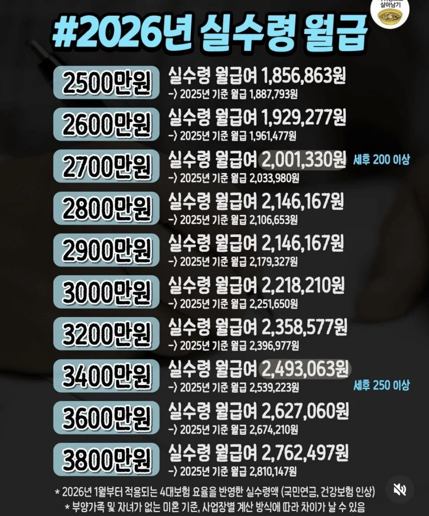 작성자광어우럭연어참치육회해산물곱창 작성시간 25.10.29 매년 세금이 올라 세후 월급만 계속 줄어드는데 ㅠㅠㅠㅠ 연봉이 안오르면 매년 깎이기만 하죠...