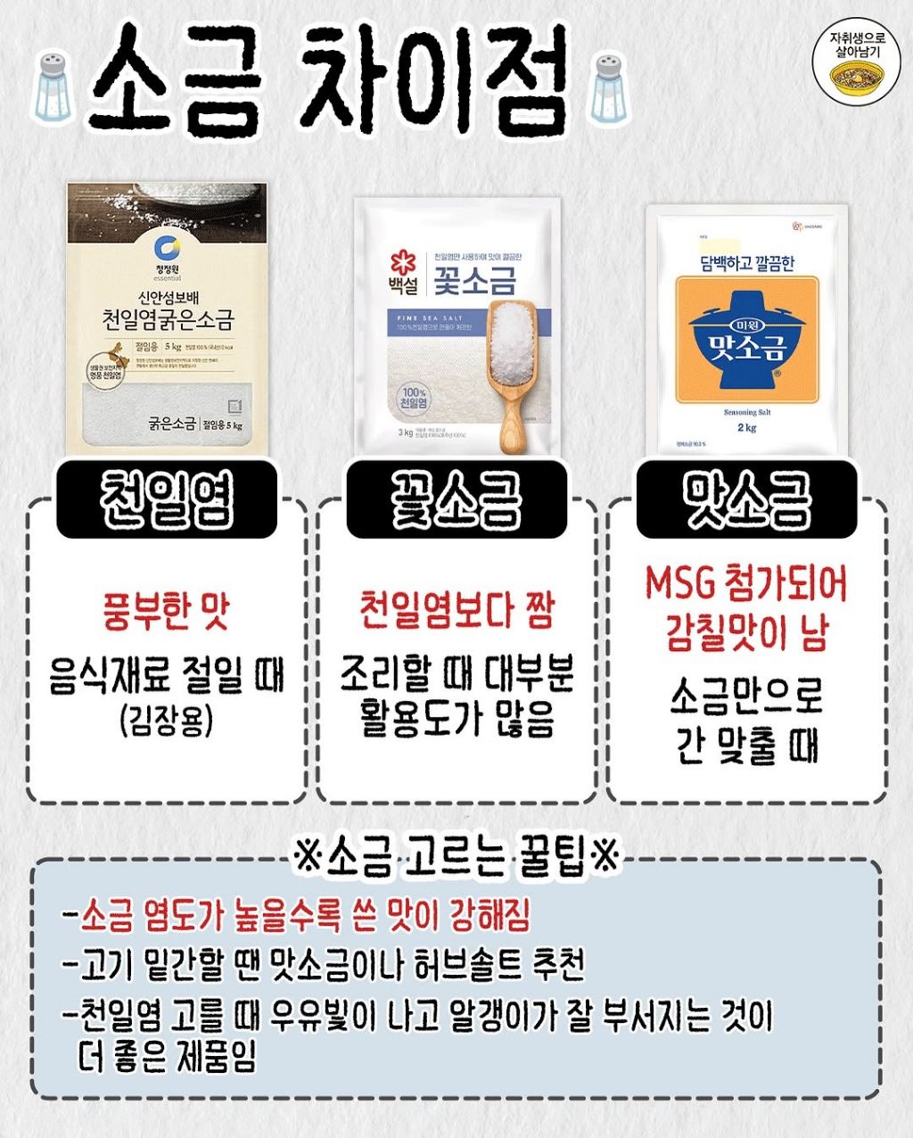 2. 이중 다섯가지만 골라야 한다면 <<맛소금, 알룰로스, 다시다, 마늘, 2배식초(무침할때 일반 식초 쓰면 원하는 만큼 안 시큼함>>