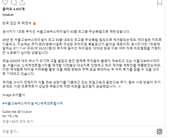 [스크랩] [기타]반포 고속버스터미널 재개발 작성자나른고양이|작성시간25.11.25|조회수1,779 목록 댓글 2 글자크기 작게가 글자크기 크게가 출처: https://theqoo.net/hot/4004507467?page=2더쿠 - 반포 고속버스터미널 재개발https://www.instagram.com/p/DRTTDNJifHe/theqoo.net 다음검색 스크랩 원문 : *여성시대* 차분한 20대들의 알흠다운 공간 현재 게시글 추가 기능 열기 북마크 공유하기 신고 센터로 신고 댓글 댓글 2 댓글쓰기 답글쓰기 댓글 리스트 작성자하늘별비 | 작성시간 25.11.25 제발 고층 좀 그만 지었으면 좋겠음..그냥 적당한 사무층 정도면 되는거 아닌가..저게 개발사 말고 누구의 득인지.. 작성자방탄소년단지민 | 작성시간 25.11.25 가끔 높은 빌딩만 잔뜩 있는곳 보면 갑자기 숨이 막힘 ㅠ 저러다 싱크홀 생길거 같음 ㅠㅠㅠㅠ 댓글 전체보기