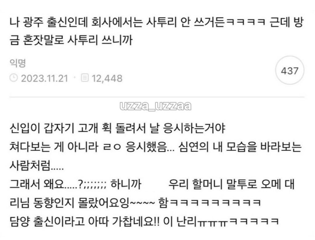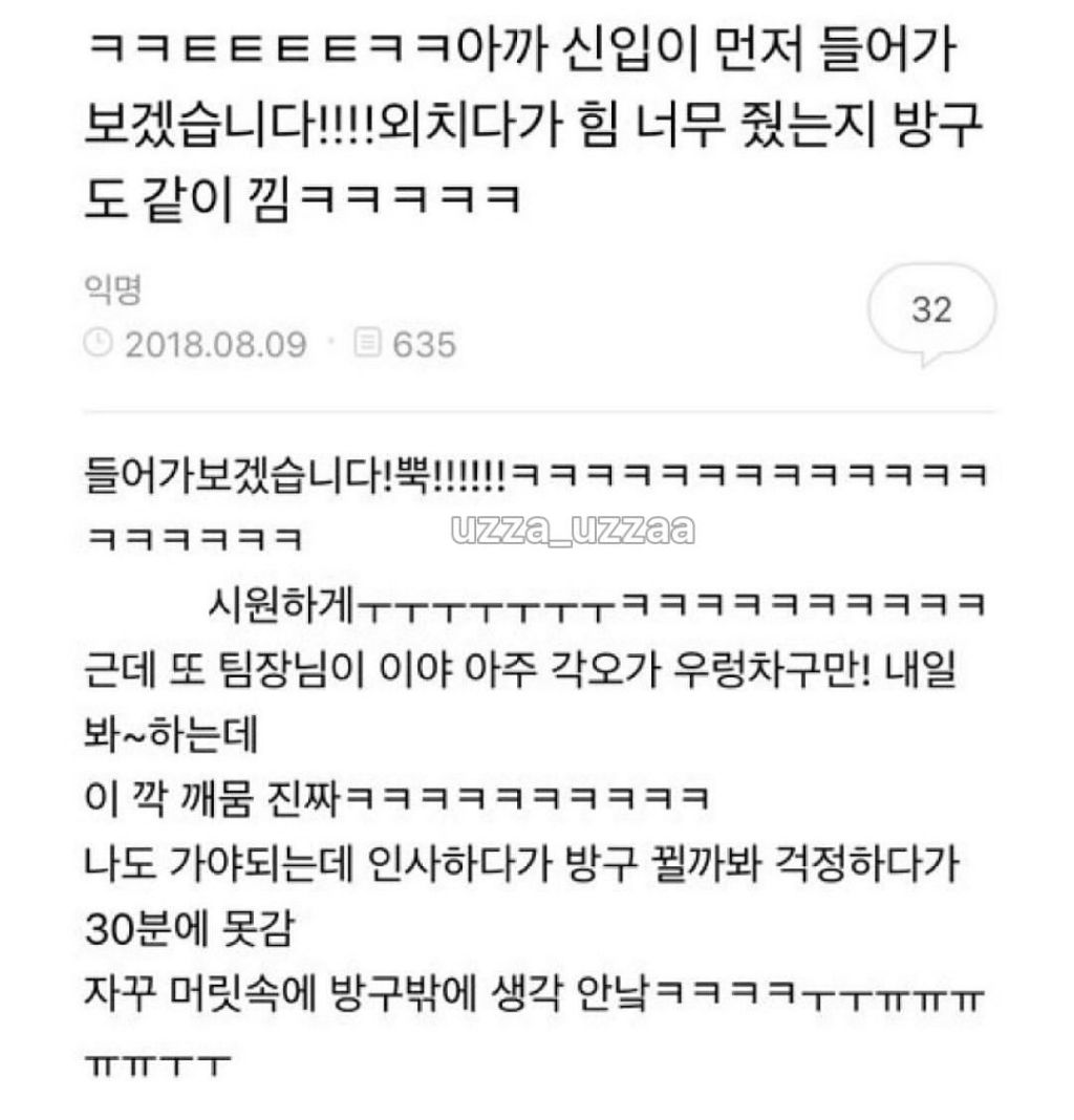 작성자도레미레미파미파솔솔 작성시간 25.11.29 나는 아주 조금 편하게 지낸 미국인 동료한테 회사 개인 메신저에 쓴다는 게 전체 메신저 뿌림... 근데 하필.. 내가 영어 잘 못 하기도 하고 편하고 좀 웃기려고 막 영어 문법 신경 안 쓰고 콩글리쉬 섞어서 (알아 들음) 썼는데..ㅜㅜ 영어 전공하신 분이 나 놀린다고 막 교정해서 보내주시고.. 수치스러웠음...ㅋㅋ