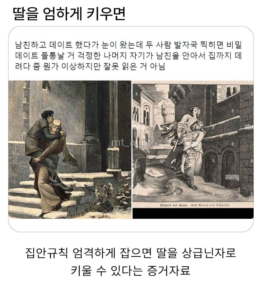 [유머]딸을 엄하게 키우면 작성자전재준|작성시간25.11.30|조회수26,484 목록 댓글 4 글자크기 작게가 글자크기 크게가 엽기 혹은 진실(세상 모든 즐거움이 모이는곳)출처 : 다음검색 현재 게시글 추가 기능 열기 북마크 공유하기 신고 센터로 신고 댓글 댓글 4 댓글쓰기 답글쓰기 댓글 리스트 작성자4523794516 | 작성시간 25.11.30 반대가 아닌 이유가 뭔디 답댓글 작성자현종이에요 | 작성시간 25.11.30 여친집근처에서 여자발자국이면 부모안심남자발자국이면 혹시......??때문인듯 작성자주상마마 | 작성시간 25.11.30 사랑은 사람을 강하게 만드는겨~~♡ 작성자둥실둥실 | 작성시간 25.11.30 근데 서양맘들 양손에 애들 하나씩 들고 다니는 거 보면 진짜 쌉가능임 댓글 전체보기