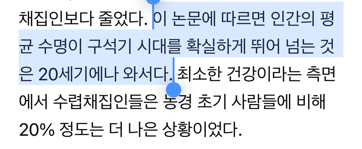 수렵 채집 시기 최소 몇십만년 >>>>> 농사 몇천년