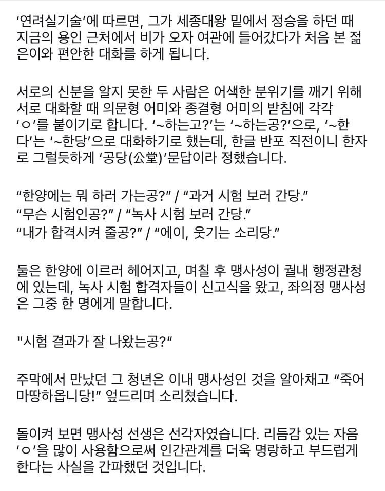 [스크랩] [기타]요즘 말투를 600년 전에 최초로 썼던 사람 작성자황초롱이|작성시간26.02.05|조회수4,142 목록 댓글 9 글자크기 작게가 글자크기 크게가 다음검색 스크랩 원문 : 이종격투기 현재 게시글 추가 기능 열기 북마크 공유하기 신고 센터로 신고 댓글 댓글 9 댓글쓰기 답글쓰기 댓글 리스트 작성자석진이 | 작성시간 26.02.06 공당문법 ㅋㅋㅋㅋ 해봐야징 작성자초콜릿우체국 | 작성시간 26.02.06 귀여우시다 ㅋㅋㅋㅋㅋㅋㅋ 작성자몬스터요구르트 | 작성시간 26.02.06 ㅋㅋㅋㅋㅋㅋㅋㅋㅋㅋ 선대부터 쓰였던 말투 ㅋㅋㅋㅋㅋ 작성자재-쥬래갠 | 작성시간 26.02.06 좋잖앙?ㅋㅋㅋ 작성자내오늘안에빚갚으리오 | 작성시간 26.02.06 ㅋㅋㅋㅋㅋㅋ 공공 댓글 전체보기