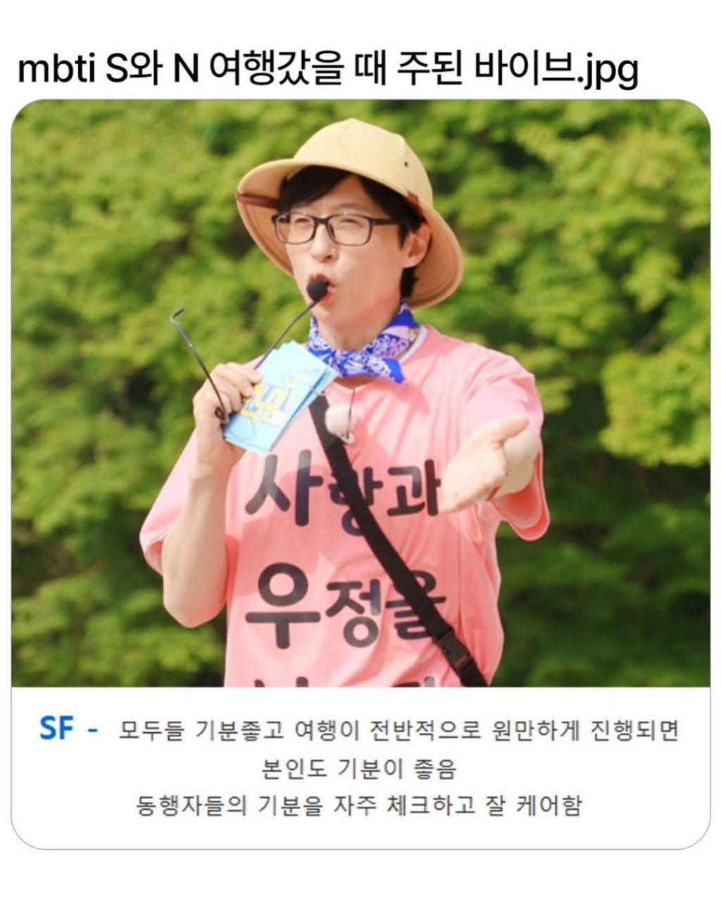 [기타]mbti별 여행가서 하는 생각 작성자고양이|작성시간26.03.25|조회수4,013 목록 댓글 4 글자크기 작게가 글자크기 크게가 엽기 혹은 진실(세상 모든 즐거움이 모이는곳)출처 : 다음검색 현재 게시글 추가 기능 열기 북마크 공유하기 신고 센터로 신고 댓글 댓글 4 댓글쓰기 답글쓰기 댓글 리스트 작성자고소한거한잔 | 작성시간 26.03.25 new 오오 맞아 ㅜㅜ 작성자아기비단털쥐 | 작성시간 26.03.25 new infp,isfp 번갈아가며 나오는데 다 맞네.. 나... 작성자폥수 | 작성시간 26.03.25 new sf인데 딱 sf부분만 공감감ㅋㅋㅋㅋㅋ싱기 작성자재-쥬래갠 | 작성시간 26.03.25 new 아 아니라고 하고 싶었는데 반박이 안되네ㅠㅠㅋㅋㅋㅋㅋ 댓글 전체보기