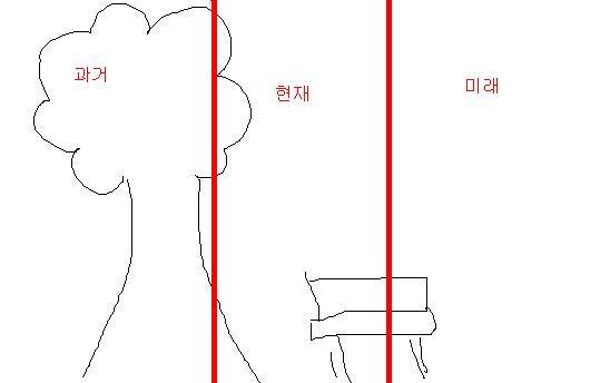 작성자밋치휴어. 작성시간 09.03.14 양쪽에 나무있고 가운데에 벤치 그렸는데 그럼 나는 과거에도 집착하고 미래에도 집착하는 인간인건가.......하핳하하하하하