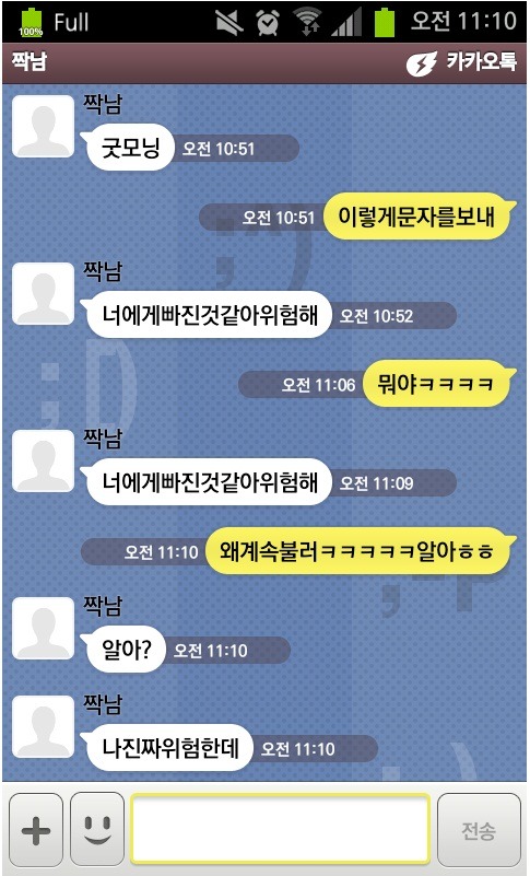 갑자기 뜬금없이 굿모닝 이란 카톡을 보낸 짝남
