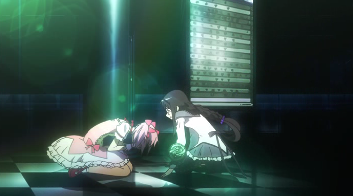 호무라가 총으로 마도카의 소울 젬을 총으로 쏴서 깸