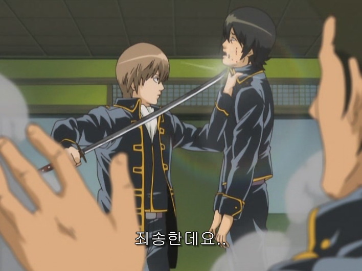 수근수근대고, 그걸 뒤에서 보고있던 소고는 바주카포로 날려버린뒤, 칼까지 들이밀어.