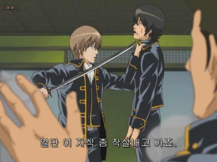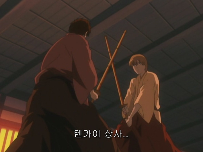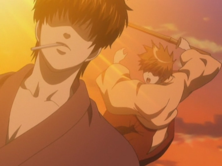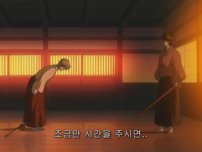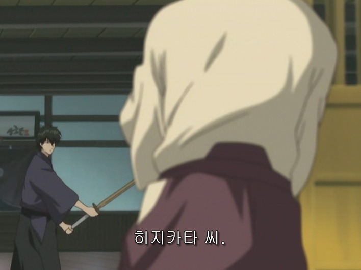 히지카타가 검 훈련을 하고 있는데 , 소고가 찾아와서 대련해 달라고해.