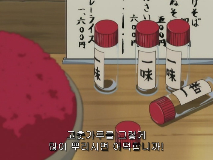 미츠바가 엄청 매운 입맛을 갖고있어서 자신의 음식위에 고춧가루를 그냥 들이붓자, 그걸 히지카타가 보고는 자기는 마요네즈를 쭉 짜고있어, 그걸 미츠바가 뭔가 흐뭇한 표정으로보고 소고는 기분나쁘다는 표정을 짓고있지.
