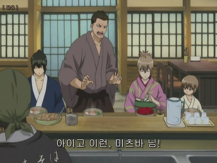 그리고 어쩌다가 소고, 곤도(머리에 뭐 틀어올린사람), 미츠바, 히지카타 이 네사람이 음식점에 왔는데