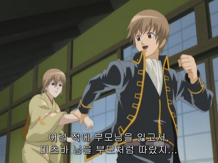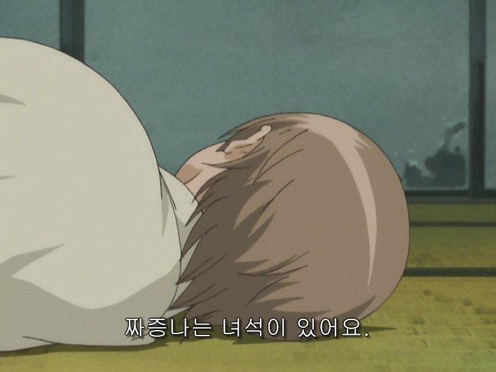 어린시절의 소고와 미츠바가 나와. 소고가 도장가기 싫다고 찡찡대고있어