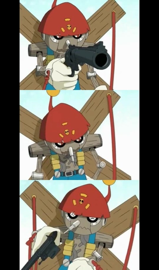 피노키몬이 총알 끼우는 사이에 피노키몬 쿠크다스 박살낼 계획을 세우는 리키