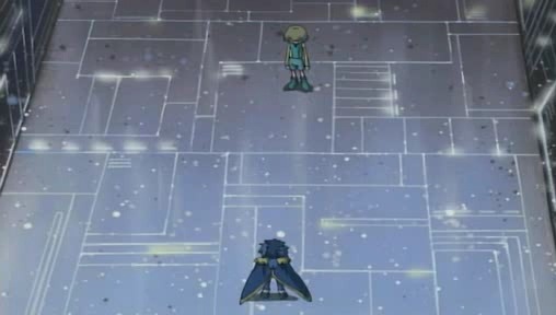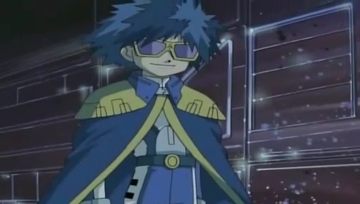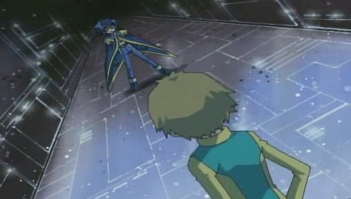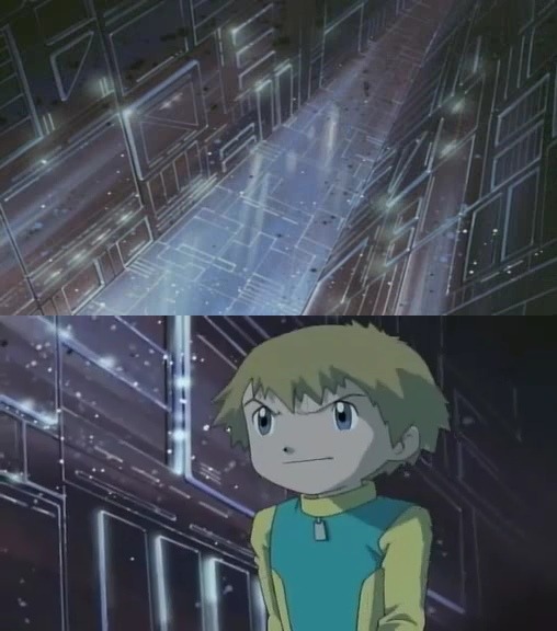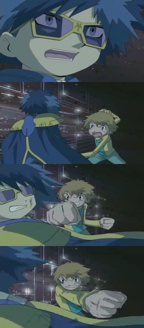 "너 보기보다 용기가 대단하구나! 어둠의 힘을 지배하는 디지몬 카이저의 요새안에 숨어들다니!