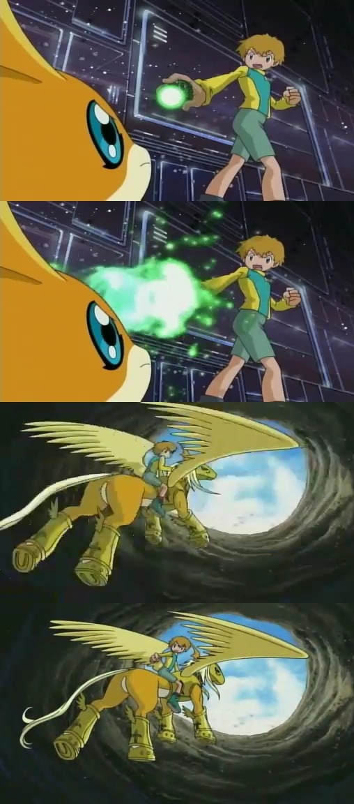 친구들을 도와주러 파닥몬을 말몬으로 진화시켜서 감 (또한 이름 모름)