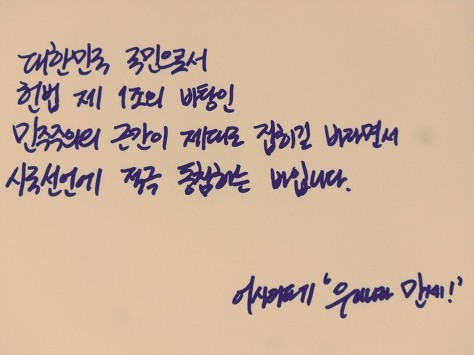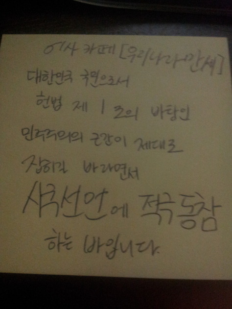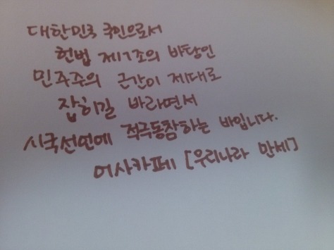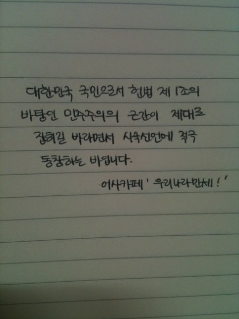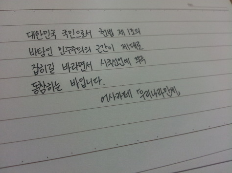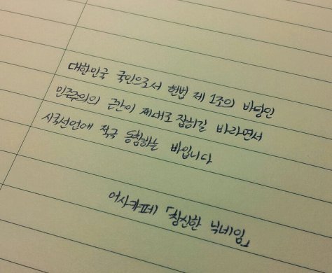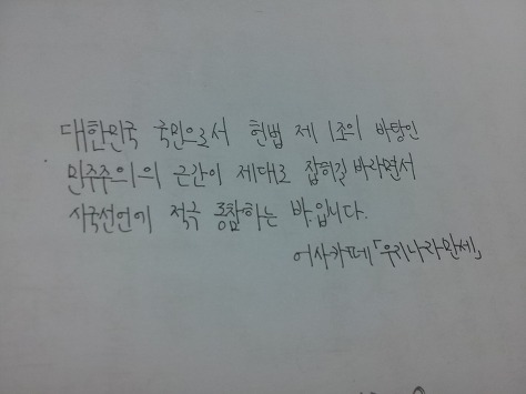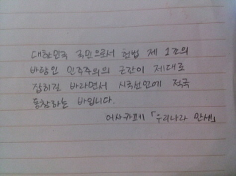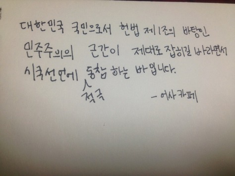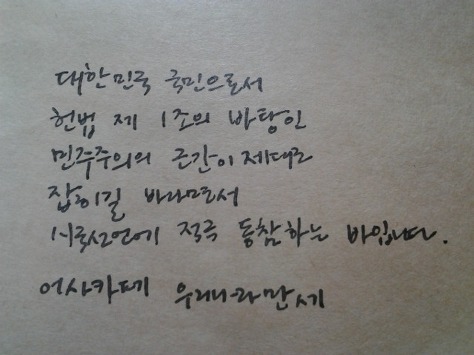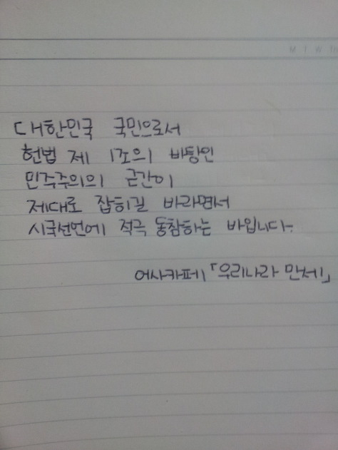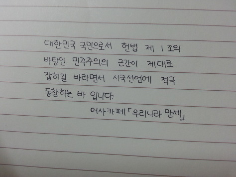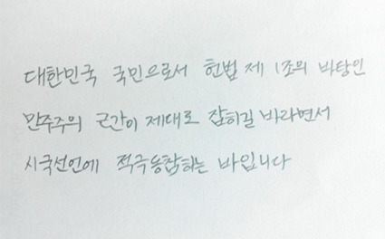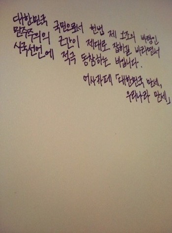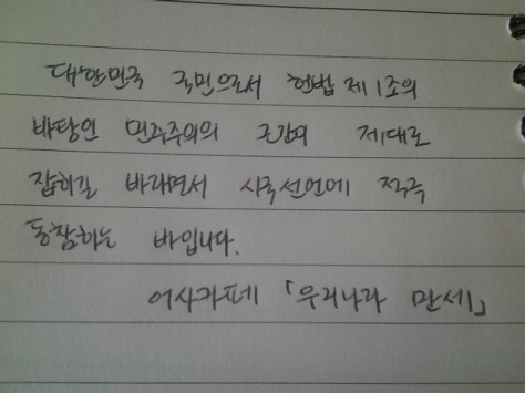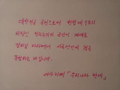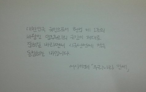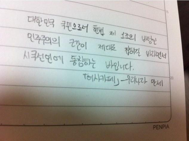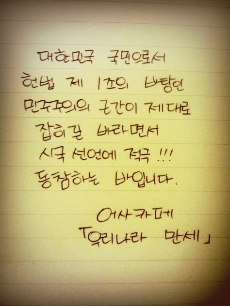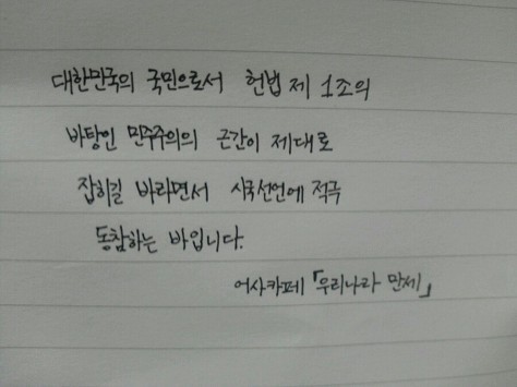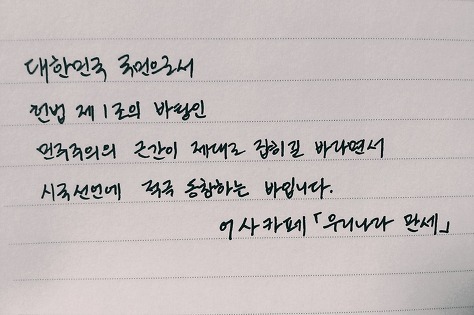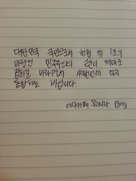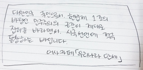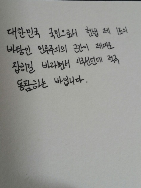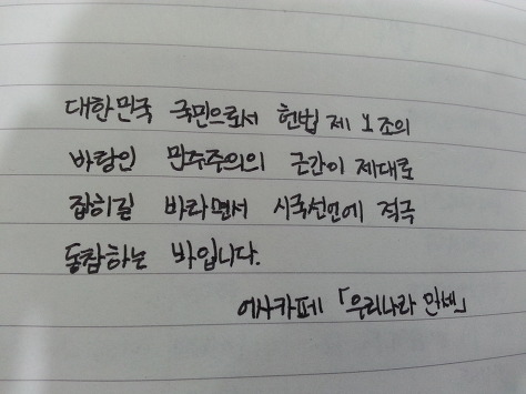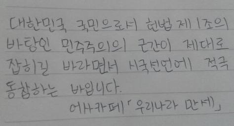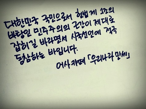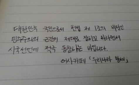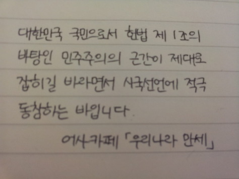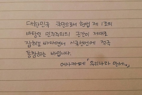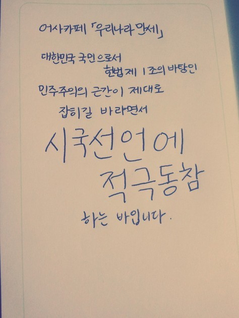 자필 시국선언에 동참해준 37명의 회원들은 민주주의의 근간이 제대로 잡히길 바라면서 손을 움직였습니다.