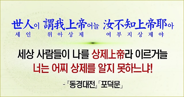 동경대전(東經大全)과 수운가사(水雲歌詞)에서 말하는 ‘상제’는 곧 나를 이름이니라.